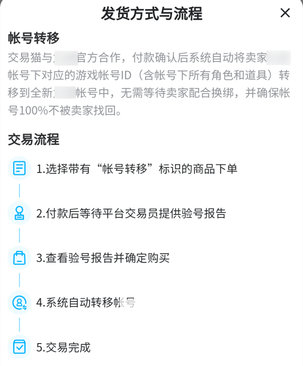 交易猫这款平台也是在国内率先支持了转移的功能,通过这种方法为大家的账号以及资金安全加固。所谓的转移其实很好理解,大家不需要登录自己买到的账号,而是提供给客服一个空白号,就能够将老账号中的内容自动传输过来,不仅非常方便,而且可以说是拥有了账号的所有权,不用担心买到的账号后期出现了问题导致没有办法正常登录游玩。但是这个转移功能也只是部分账号商品才会带有的,所以大家在购买的过程中要注意看下是否带有转移的服务标签。