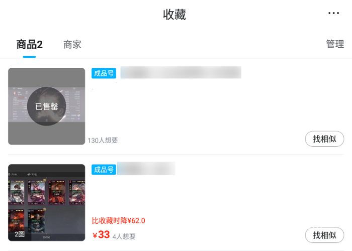这里分享给大家一个买号的小技巧,也算是交易猫平台的一个小特色了。如果大家看到有多个账号都比较感兴趣,或者感觉价格略高,想要观望观望,推荐大家点击进行收藏。收藏之后不仅可以方便我们对多个账号进行比价,而且也能够侦查其价格变化,如果发生了降价,我们是可以接收到提醒的。