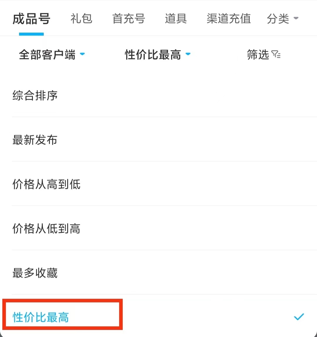 交易猫上有着很强大的筛选功能,玩家可以利用交易猫的筛选功能快速选出玩家想要的账号,首先玩家可以选择的客户端有很多,玩家可根据自身需要选择,其次就是玩家可以筛选出性价比最高的一些账号,这样一来玩家就不用把时间浪费在那些不值得的账号上了。想要大神号的玩家可以在筛选价格的时候选择价格从高到底,这样就可以在前面看到一些大神号了。