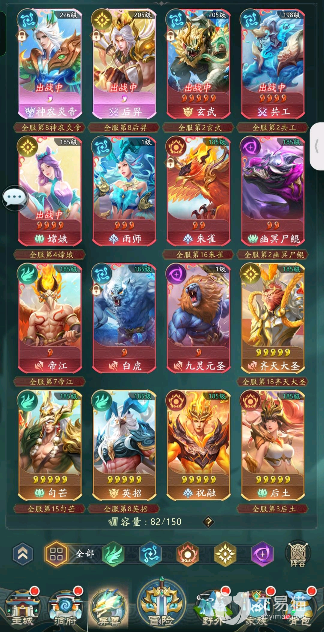第一套推荐的是帝江、九尾狐、青龙、朱雀、英招。