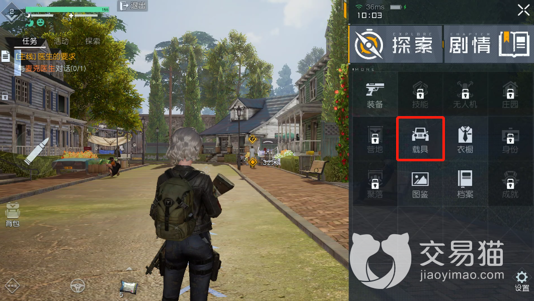 首先点击右上角由四个正方形组成的菱形图标,这里面汇聚了很多常用的板块,载具板块自然也在其中,部分板块需要到达一定等级后解锁才能使用,而载具板块在开局就是开放的,第二栏那个小车形状的图标就是它,点击过后即可进入其中的操作界面。
