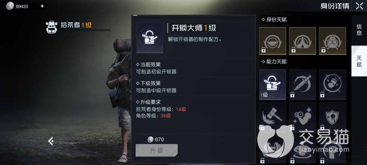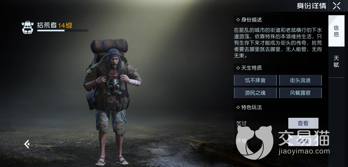 此游中的身份需要大家在达到对应的等级之后才会开启的,其中一些比较常见的技能就是一些生活中需要用到的,其中的拾荒者就是通过达到等级可以解锁的身份,各位随着使用的熟练度逐步提升,它的等级也就会越来越高。