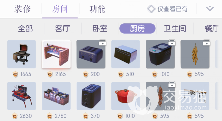 当有了这些家具小栗以后,我们就可以来到家园了,点开建造模式,我们可以发现下面会有很多的家具可以进行购买,而购买这些家具的货币就是我们的家具小栗,然后我们可以使用这些家具将自己的家园变得更加美观。