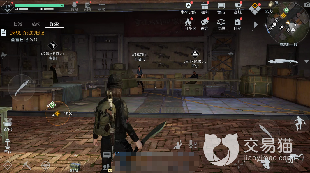 再就是游戏内的商人npc,其中包括卖杂货的克林特,卖衣服的埃斯特,以及提供声望兑换商品服务的贾斯汀。在它们对面则是偏向武器方面的三名商人npc,其中包括卖装备材料的库珀,卡洛儿和售卖再生材料的乔尔。