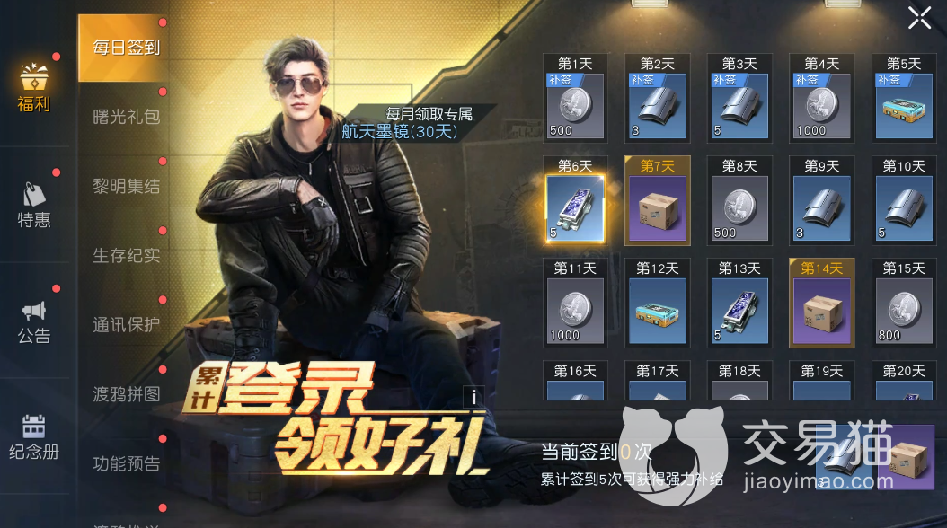 目前免费获取时装的方式有三种,首先就是每月签到第28天领取的墨镜,这个墨镜非常的百搭,无论你用的男角色还是女角色都会比较契合,当然,它并不是永久的,不过由于每月领取后的时效长达三十天,所以只要坚持签到的话也跟永久版差不多了。
