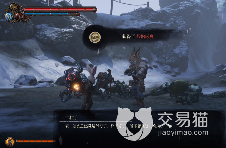 这个磁盘的位置位于岩西的位置,也就是上面图示的位置,来到这里会来到一个风雪交加的地方这个二柱子就是一个长着大角的羚羊角色,这个角色的脾气异常的差,所以玩家没有触发对话的话就会被他骂,让各位滚开。