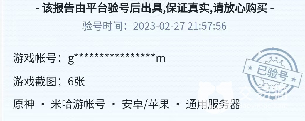 如果我们还担心原神账号的安全性问题的话,平台也为我们提供了更加全面的服务保障。有一些卖家会在账号被拍下之前,就将账号密码提供给了官方进行了验号,大家也不用担心那些没有提前进行验号的商品,因为这个流程,不管在什么时候都是会有的。如果卖家没有提前验号,我们在拍下之后到发货之前也会有平台对这个账号进行验证,然后提供给我们电子版的报告。