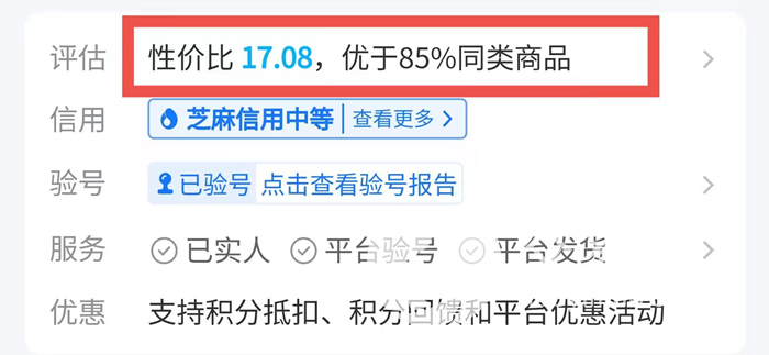 事实上,在这里还有更多的内容等待我们挖掘和发现。在这里能够看到商品的性价比,为我们的选购提供了比较重要的价格参考依据。通过芝麻信用等级的公示能够帮助我们甄别卖家和店铺是否可以信任,让我们能够更加从容、放心地下单购买。
