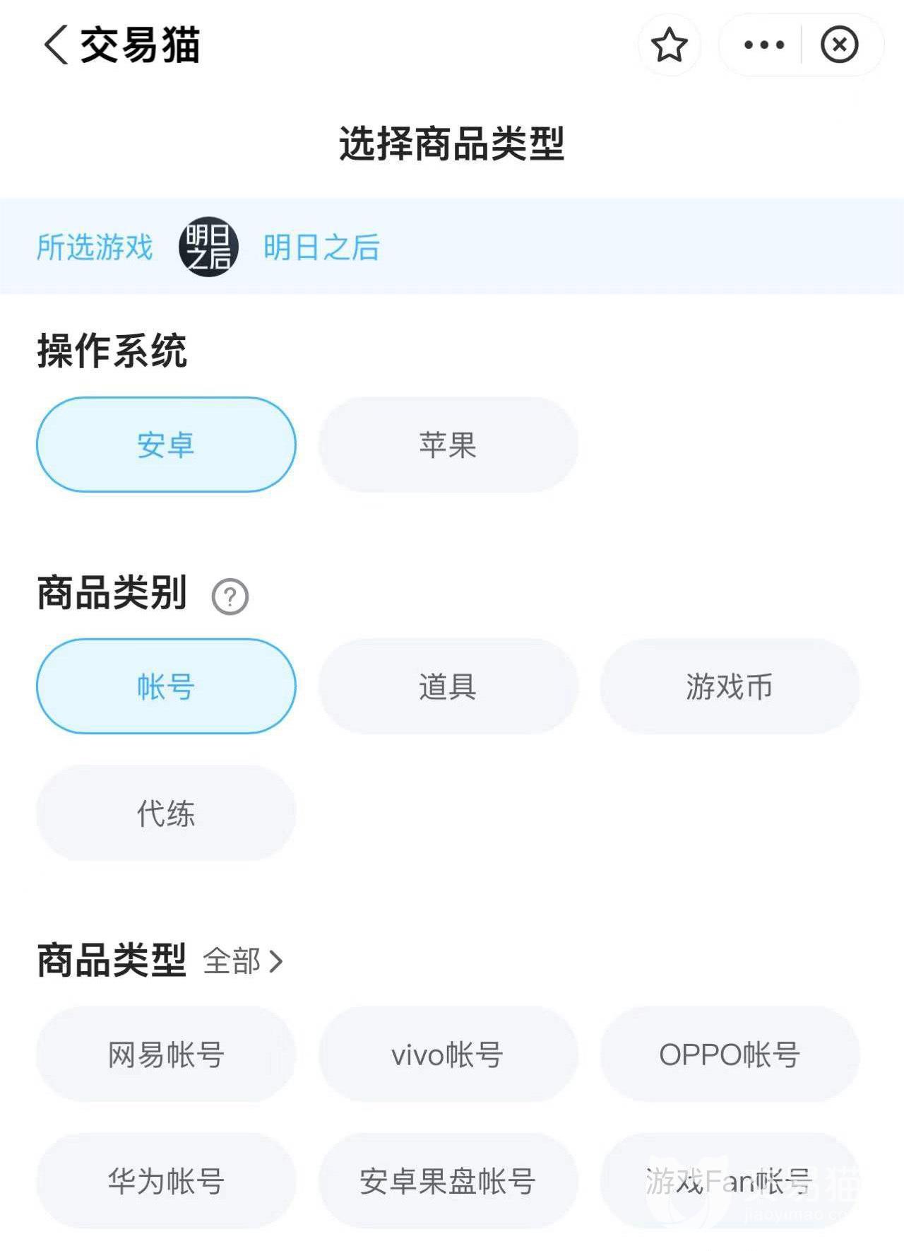 第一,交易机制完善。由于明日之后这个游戏的渠道帐号非常多,所以很多玩家不知道要通过什么渠道将它卖掉,其实这个问题很好解决,只要到交易猫平台就可以快速地卖掉不同渠道的帐号。因为交易猫里面的交易机制非常完善,每个游戏区域都有着对应的交易方式。