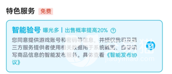 平台会向你推荐一些对账号出售很有帮助的服务,不管你是能想到的还是想不到的,它都会温馨地提示您是否需要,就拿验号服务这一点来说,就抓住了很多卖家不愿意提前交付账号的心理,选择相信平台去交于他们进行验号,且是否由平台验号也完全是自愿行为,选择之后还能获得更好的曝光率,让交易速率和可能性都大大增加。