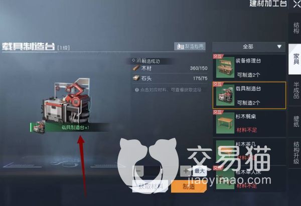 首先大家需要先制造一个载具制造台,可以先通过建材加工厂在家具里面找到载具制造台,获取制造材料之后就能制造完成了。当拥有了这个制造台之后,大家就可以把它放到庄园里面,然后点它就会出现两个选项,一个是载具制造,一个是载具修复,载具制造的意思就是说可以帮助大家制造想要的车辆。