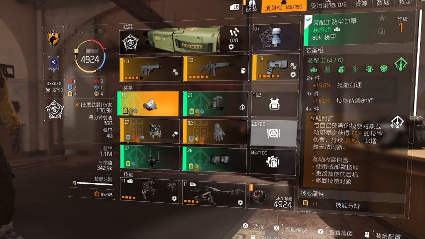只是单纯的刷够一套并不意味着结束,还需要刷出所需天赋的并洗出合适的属性。如果你是单人玩,那么绿装“装配工”就很合适,这是一套电工装,有点魔法的感觉。在地图上有许多红色的控制点,变更挑战难度,然后去打这些控制点,可以得到经验与设计图,刷到一定数量之后就知道如何去做装备了。