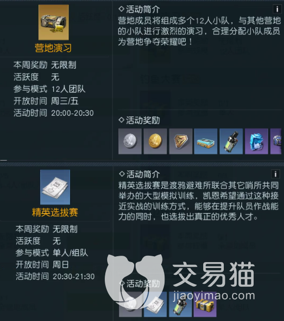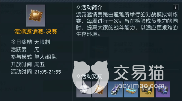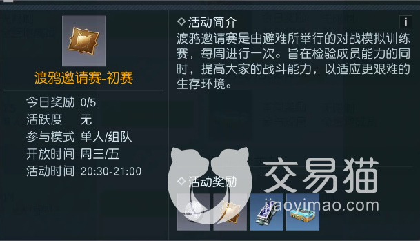 渡鸦邀请赛-初赛/决赛:这两个是关联在一起的,初赛取得一定成绩后方可参加决赛,其奖励都是层层递增的,游玩过程中玩家需要带上自己的枪械和武器,并且期间还能开语音与队友交流,很讲求团队合作以及与队友的配合。
