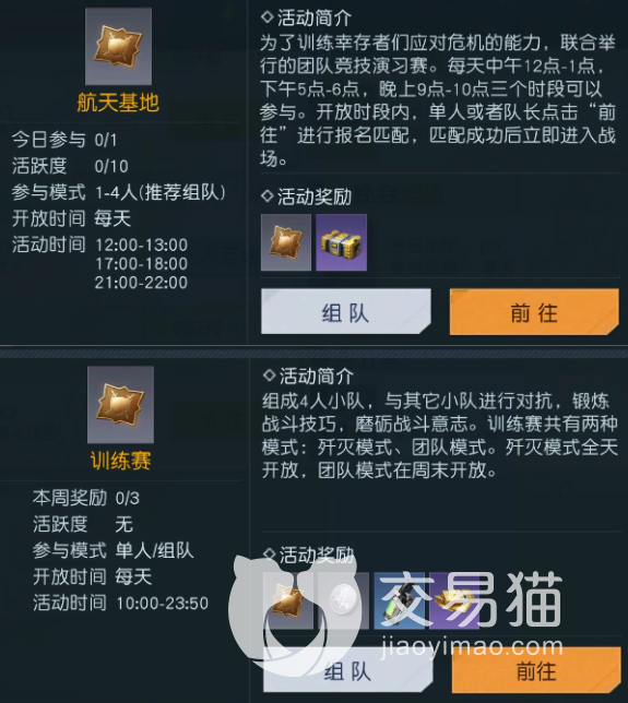 精英选拔赛:周五20:30到21:30开放的高竞技性玩法,里面有着类似排位的段位分级,每次获胜都能让自己的段位得到一定提升,而且它对于参与玩家的等级有一定要求,需要达到35级才能进入。
