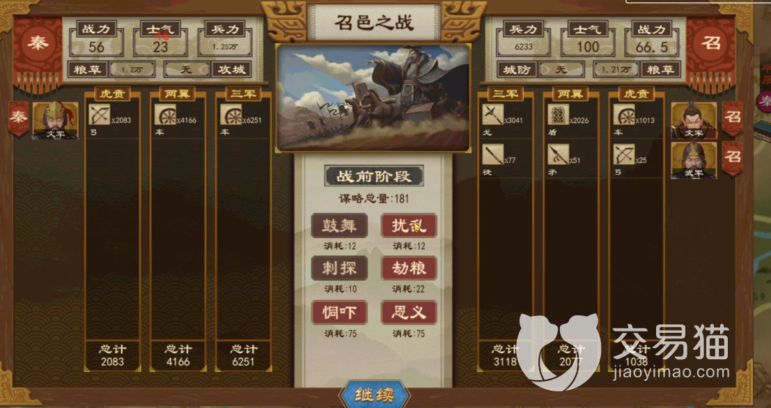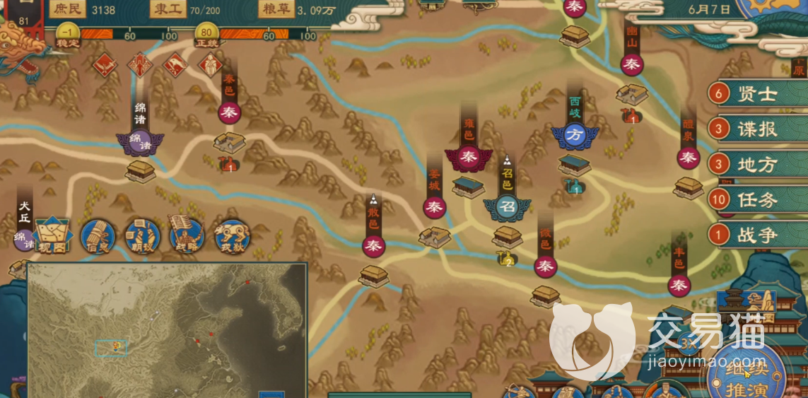在兵力不足的情况下可以选择结交戎狄蛮夷,初始免费赠送许多属性不佳的门客,用来任命很可能带来负面buff,此时将他们打发作为使节送去结交戎狄即可,刷满信用度也不急着拉人回来,等到开战时,可以向这个使节请求兵力支援,大大节省己方兵力消耗。