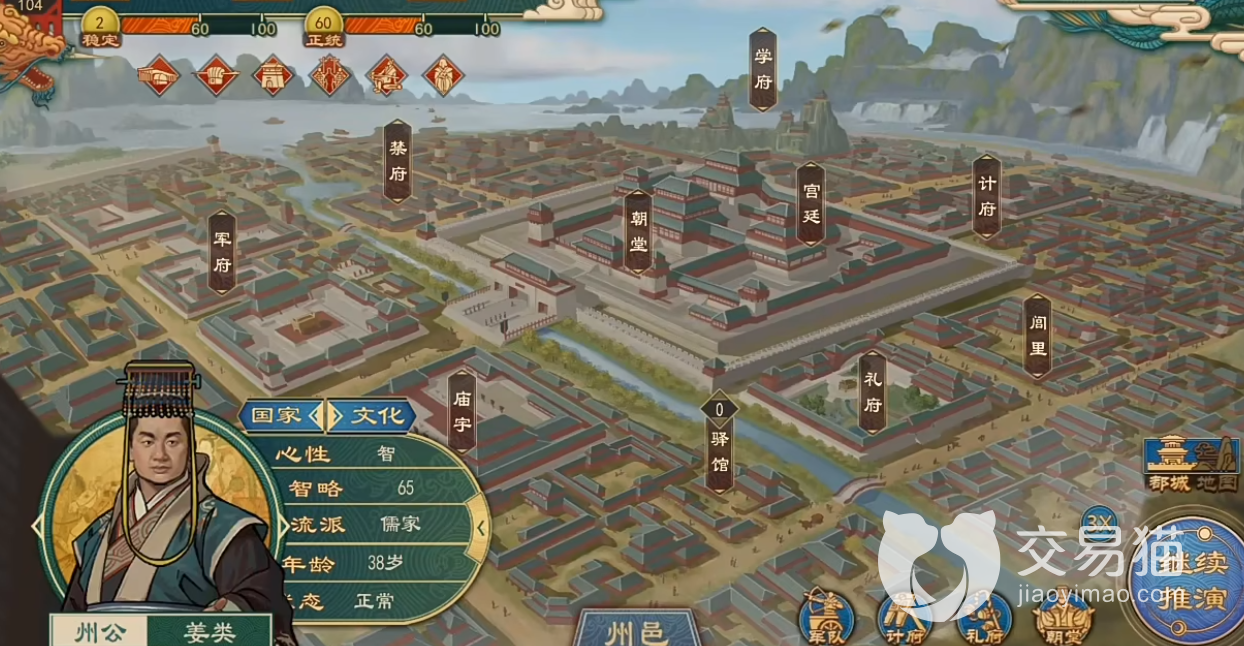 在军队管理方面,主要分为文军与武军,还有东西南北的讨伐军。派兵征伐需要人口和粮草, 对于戎狄,除了征兵之外还能派出友好使节或者提供救济拉拢关系,结交戎狄提升他们的友好度,能够得到回归礼物,在与敌国打仗时,可以请求支援为玩家补充预备役。