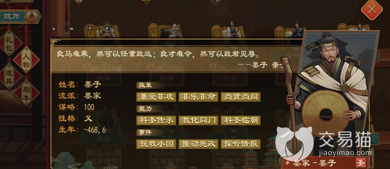 作为一款有内置商城的游戏,如果玩家想要享受更加高级的功能,那么也可选购商城的礼包、人物,比如孙武、孔子。比较值得玩家购买的有98珑币的首冲礼包,不仅有额外珑币,还赠送圣贤鬼谷子与招贤榜五个。