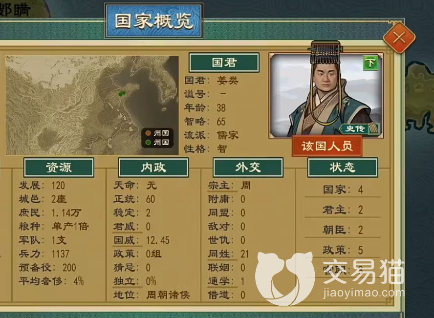 在大周列国志游戏里面,玩家扮演周天子统治下的诸侯列国的国君,开局可以选择知名大国,也可以选择不知名小国,但无论开局如何都需要与其他国家进行友好的外交,避免过早开战。