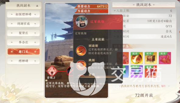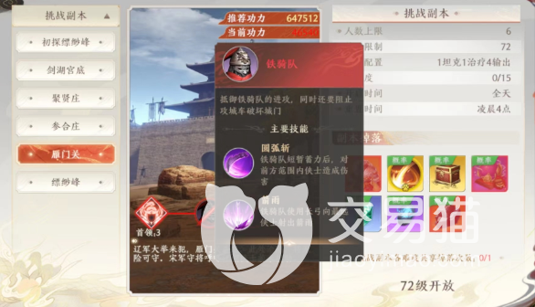 说有难度的原因是因为这个副本是等到大家72级的时候才会解锁,遇到的第一个有难度的boss就是辽国铁骑,这个boss会带来一些骑兵攻城,大家需要在守住沉闷的前提下利用大范围攻击击败这个敌人,大家只要注意在他们的前锋冲锋的时候躲避就可以了。