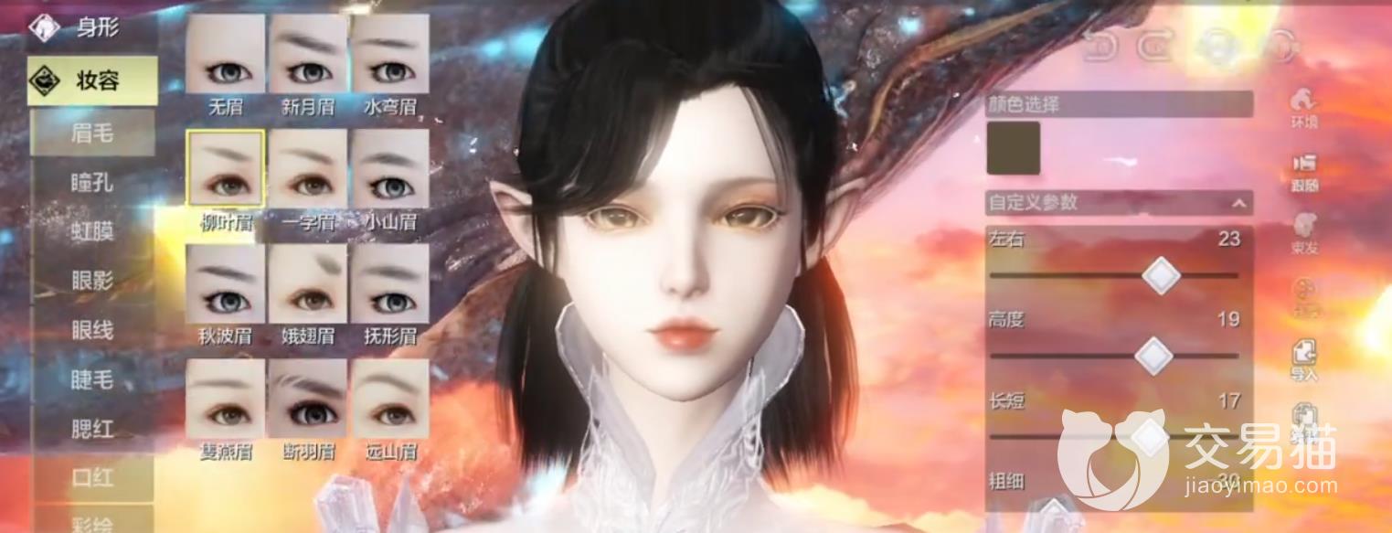 眉毛这里小编选择的是柳叶眉,具体参数如图所示。