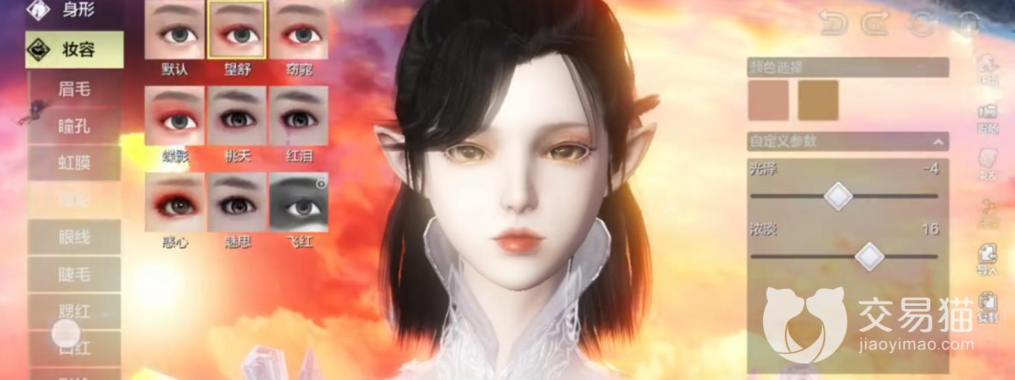 眼影这里选择望舒,光泽-4,浓淡16。