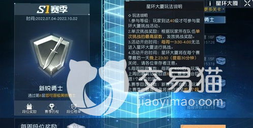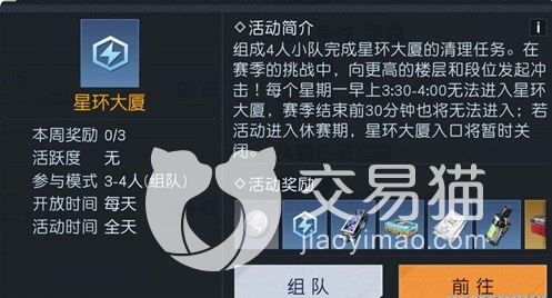星环大厦在这款游戏中是以pve比赛形式存在的,已经延续了好几个赛季了,但是有几个规定的时间是无法进入的,比如说星期一早上3:30左右。挑战这个副本需要玩家达到40级,并且组成三人以上的队伍。虽然挑战次数很多,有20次,但是奖励只有三次,而且任务难度比较高,要想获得好成绩,就需要你提前组建一支非常强大的队伍。