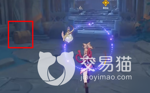 在行走的过程当中,先拾取前面的道具,然后打开机关。打开机关之后不能继续向前走,而是原路返回刚才的房间,朝着右侧方向移动,这里有一个宝箱,进入传送区域。来到这里除了获取第3个道具之外,看到打开的门跳进去,将拾取的道具放入平台中,然后点击开门。