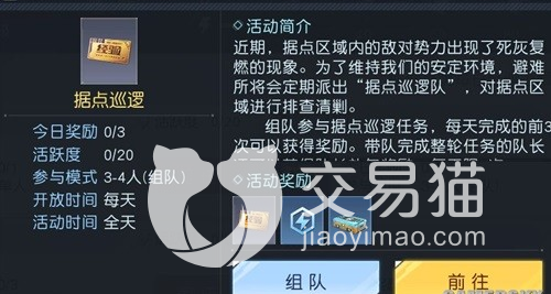 完成据点巡逻这个任务,会获得很多的奖励,而且因为新手也可以接这个任务,所以成为了玩家每天做活动之一。在完成全部的三次挑战之后,玩家可以获得20点活跃度,这在游戏中也是非常重要的,还会获得各种各样的礼包,其中的道具对游戏的进行也是非常有用处的。
