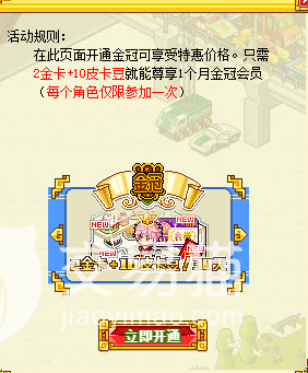 从目前的皮卡堂游戏版来看,玩家想要开启金冠的话,是需要花费5金卡外加25皮卡豆来进行维护的,那么一个月的时间,换算下来,5金卡也就是25元的价格了,如此价格的话,实际上已经有些虚高了。