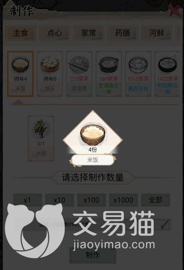 1、玩家需要在前期修建农田,然后种植大量的水稻,这需要些许的成本,前期完全可以解决的,当这些水稻成熟之后,我们就可以拿这些水稻制作米饭了,而这些米饭的利润算是性价比最高的了,玩家可以直接拿到交易当铺去售卖获得铜钱,这是前期来源最快、最实惠的铜钱获取方式了。
