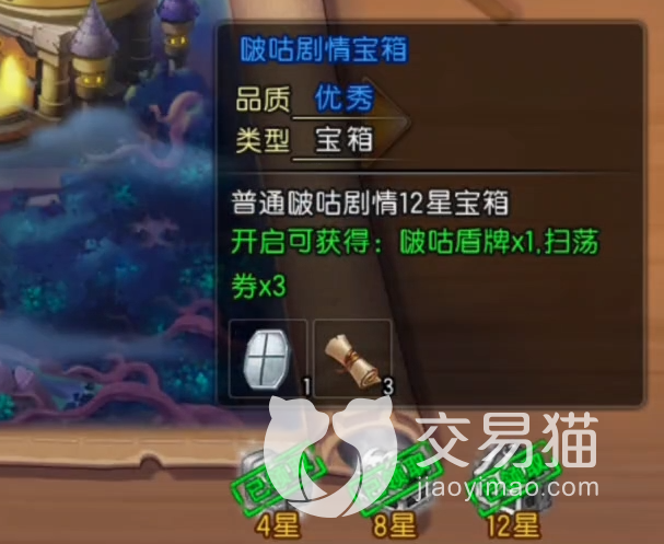 这里需要玩家将这个地方的四关都是满星通关才可以,成功后就可以在初始界面开启十二星宝箱,其中便会有这个物品。另一个道具被称作天使之赐,它的获取要容易一些,只需要将这个地方的前四关都通过。