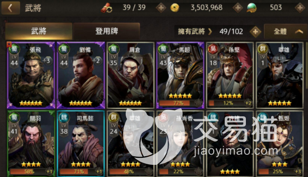 在这款游戏内,历史上知名的一些三国武将其实都是可以存在的。像张辽、孟获、董卓、关羽,张飞等等,这些角色战力不同,而且他们的品质也会不同。游戏内的武将分为不同的星级,最高品质为六星,最低品质为一星。