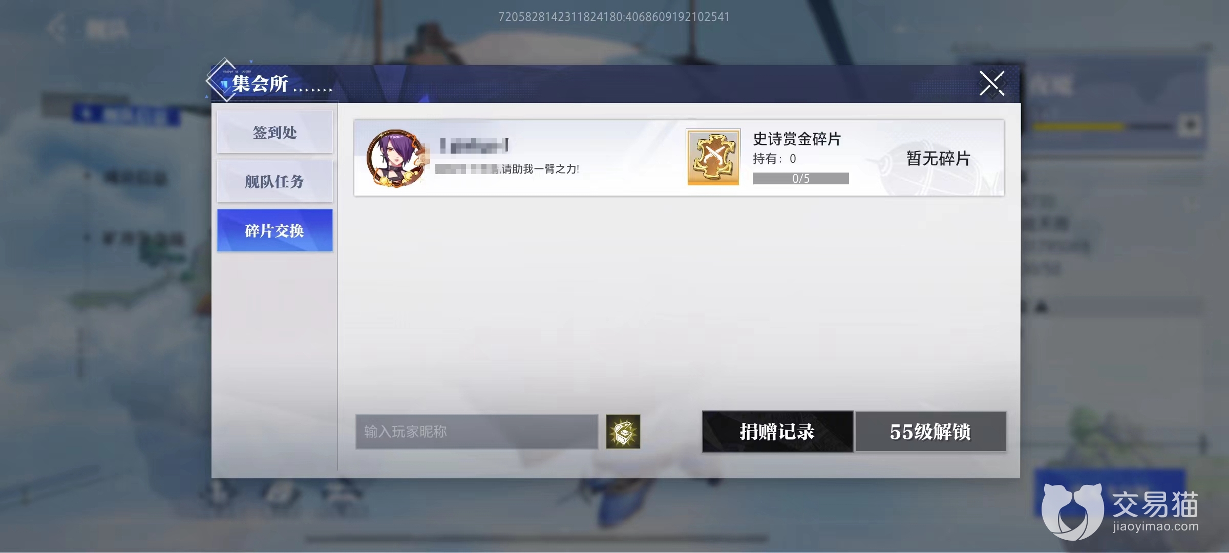 第三个玩法是碎片交换,这个功能要个人等级达到55级才会解锁,玩家可以发布自己想要的碎片,如果其他成员有多余的碎片就可以捐赠给你。