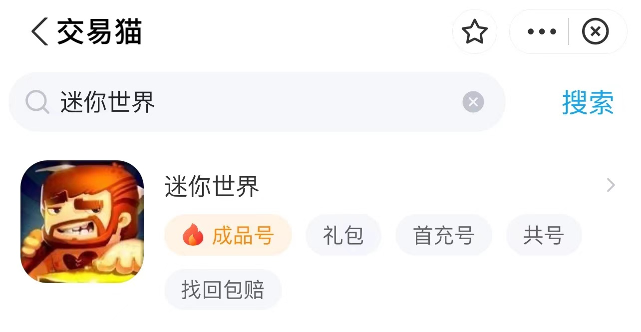 怎么进入交易猫交易平台呢?因为交易猫已和支付宝合作,玩家只要打开支付宝,搜索"交易猫"就能进入小程序。交易猫中有单独的迷你世界游戏专区。专区中,玩家可以通过购买来获得成品号,礼包,首充号,共号等账号。如果不想浪费前期练级的时间,玩家可以选择直接购买成品号。而礼包更是让玩家只要花费几块钱甚至几角钱就能体会到更多的游戏乐趣。