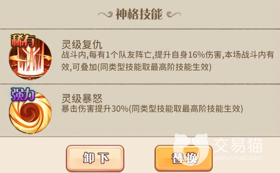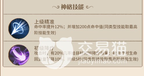 5个同稀有度的低级神格能合并为一个更高稀有度的 ,例如5蓝升1紫。前期一般用蓝色神格足以应付,它带来属性加成并没有多么亮眼,即便是最高级的红色,它和蓝色相比在属性上的提升也不多,因此大家更看中的是它的技能效果如何。