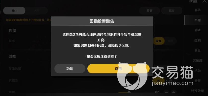 对于设备性能一般的玩家,小编不建议大家如上述操作,这时把画质调整到中,然后帧率能调到多高就多高,这样也会对画质的提高有所帮助,如果玩家强行拉满设置,则会出现下图情况,此时手机的热量会让玩家感到恐惧。