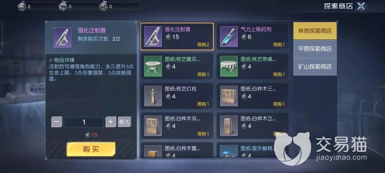然后子弹壳和火药是制作弹药的基础素材,而弹药也决定了大家战斗时有没有后勤不足的烦恼,所以也是多多益善,采购起来不要心疼。而燃油是用来补充设备燃料,比如载具要跑动会需要燃油,而来自变异者的变异血液则是用来合成道具,日常击杀变异者获得量也很稳定。简易绷带和抗体药剂是影响角色生命和健康的基本恢复道具,绷带回血,抗体药剂则是治疗生病,因为游戏里拟真的人物生存指标,所以稍有不慎在恶劣的环境下生病了就得用抗体药剂来治疗。精铁扳手则是修理合成时会用到消耗道具,每次消耗量不大。