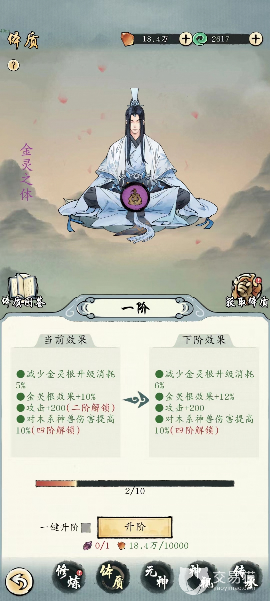 元神加成则是需要玩家先突破到结丹期,解锁元神玩法之后就能获得相应提升。体质同样是在天元阁中抽取到,按照品质分为不同类型,同样品质下不同体质所带来加成效果也有很大区别。如果能获得最佳橙色体质,那么除了其他战斗属性之外,单单是增幅速度就能提高10%,例如浩然儒体、太上道体、纯阳剑体等都有这样效果。