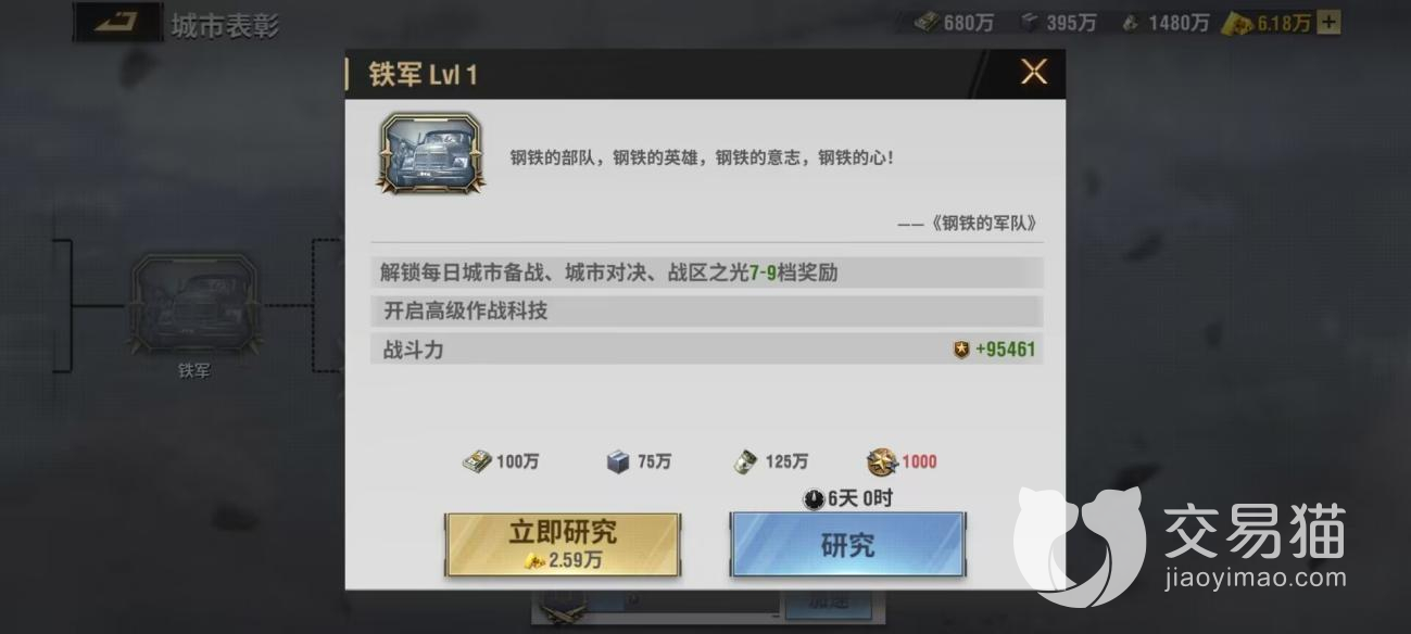 1、玩家在达到二级城的时候就开始开启“城市表彰科技”了,而这个高级作战则是城市表彰中的一个重要部分,在组建铁军之后就可以解锁了,同样都是需要用到“城市贡献勋章”才能学习。
