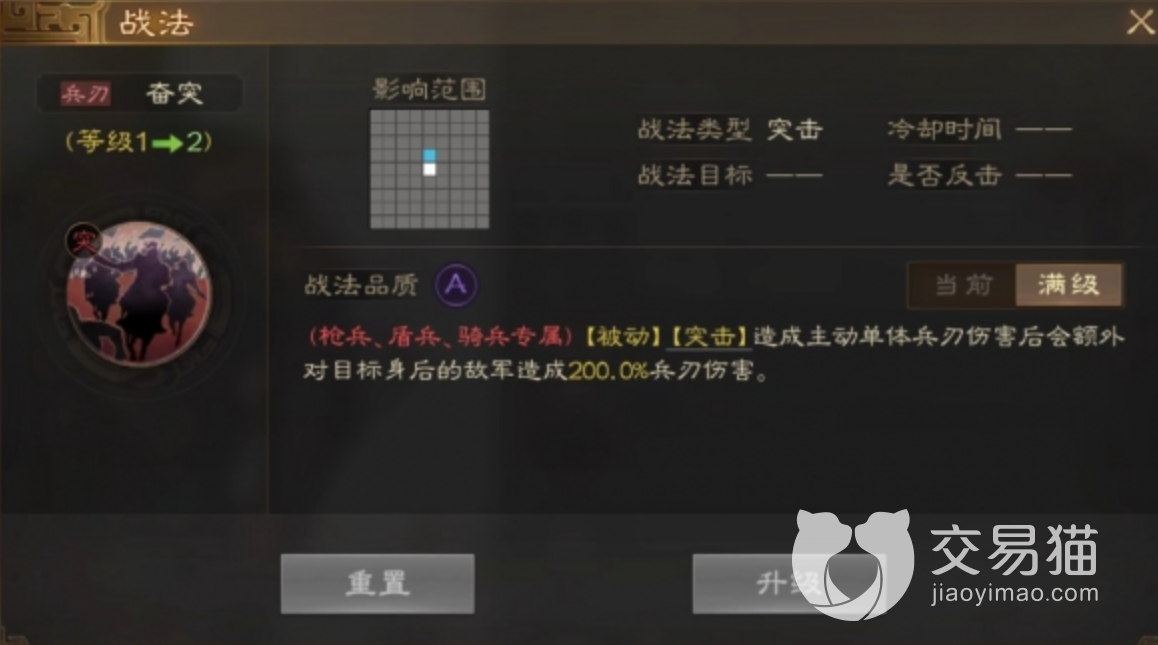 他自身带有的主要战法是奋突,对敌人造成单体的兵刃输出之后,还可以对后续的敌人继续造成伤害。有种隔山打牛的感觉,不过缺点是输出范围较为单一,只能对垂直的敌人造成输出。推荐战法的话可以继续携带能增加单体伤害的技能,能进一步提升他的输出。
