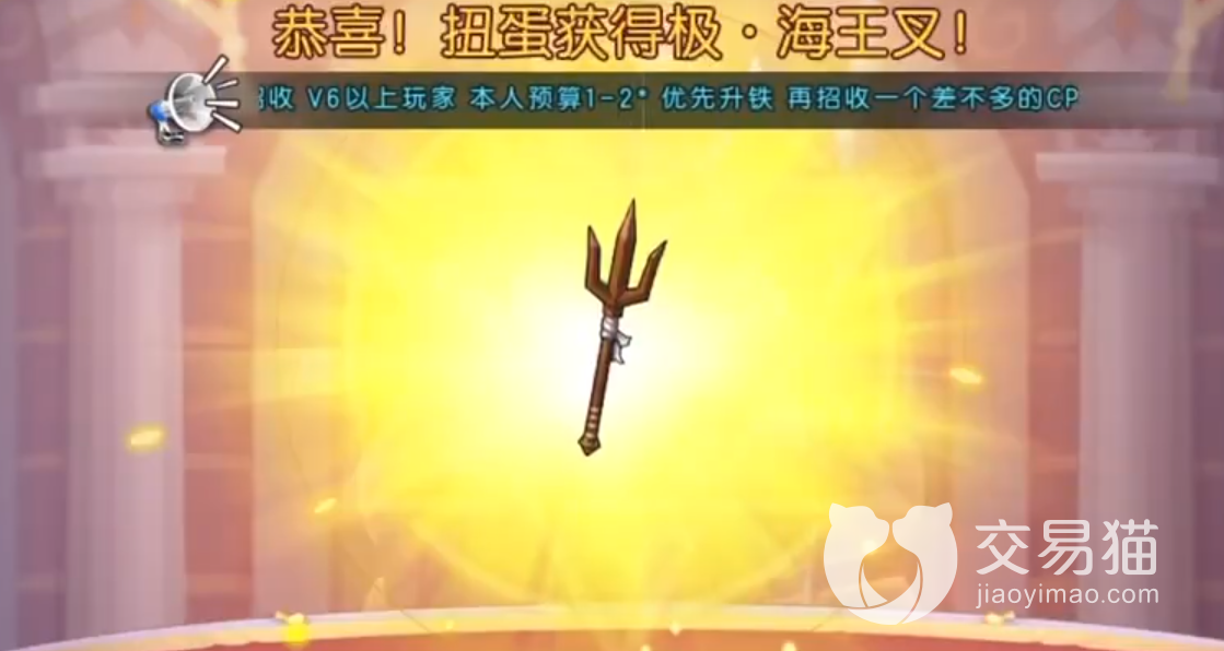极海王叉是游戏中一把极难获取的武器,这一点相信大家都知道,目前这把武器的获取途径只能靠抽扭蛋获得,这个抽取概率是非常低的,粗略估算一下想要抽到这把武器至少需要100抽,这个需求量是大部分普通玩家承受不起的。