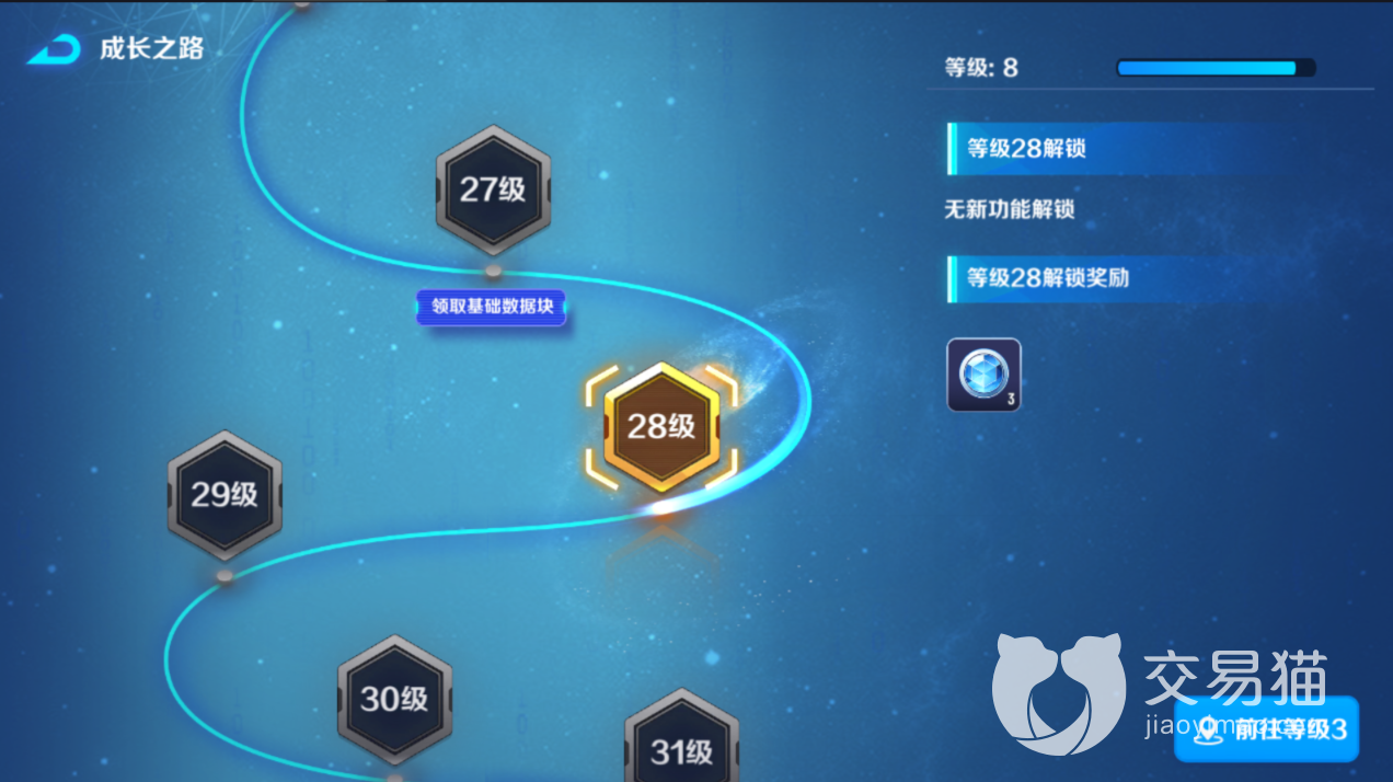 玩家进入游戏后,在主页面中包含多个子页面,其中包括成长之路,任务,仓库,探险者等,在成长之路中玩家根据成长路线不断提升等级获得相应的道具奖励。