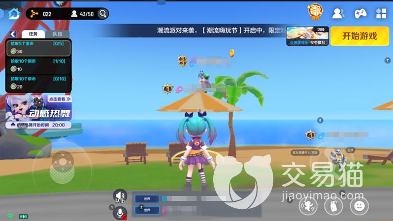 在玩家等级达到6级时,即可开启比特城场景,在比特城中包括任务和队伍两种模式,玩家可以邀请好友共同组队进行完成任务,也可以单独前往各个地点完成任务。在任务中包含拾取金币任务等,玩家可以前往比特城沙滩遮阳伞或者树顶拾取金币。