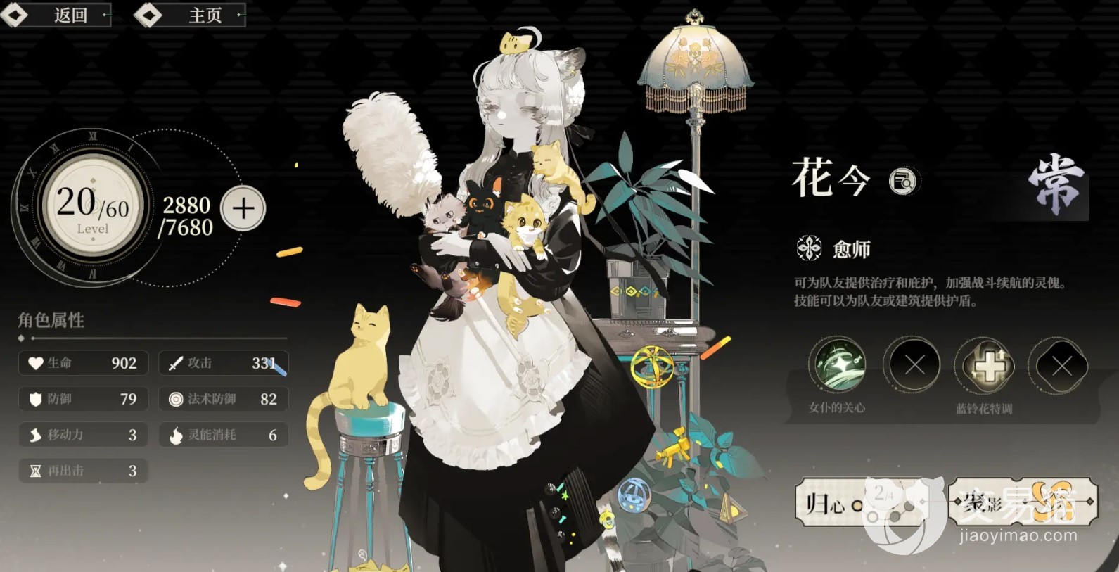 代表角色“花今”,目前奶妈整体评价一般,因为只有长线作战才能发挥他们的价值,花今是仅有的盾奶,即便是满血也有收益,所以更具价值。