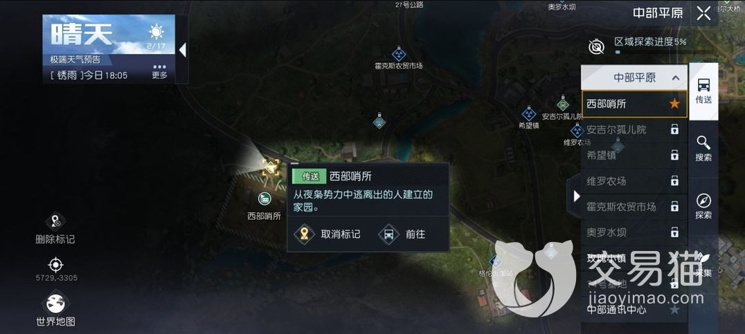 根据这些内容,可以直接点击传送来到相关地图,再根据显示路牌信息或据点直接前往正确区域。如果上面所说这两点没有解锁,那么就只能自己手动前往。来到相关区域后,再次点击背包中定位器,就会弹出雷达界面,此时要进行的是更精准定位,显示具体方向和距离,根据雷达颜色就可以判断出具体距离数值,这样不断调整方向,最终就能来到正确位置。