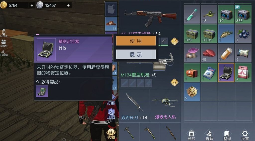 但需要注意的是,获取之后道具仅仅是精密定位器,还不是我们需要的物资定位器,必须手动点击下使用,才能再次获得真正物资定位器。里面记载了非常具体的埋藏物资位置,只要根据提示各种信息将位置解析出来,就可以直接前往埋藏点挖掘。具体使用方式是先打开道具,查看左下角出现的黄色字体提示,该提示中会详细介绍物资埋藏在哪一地图,附近路牌或据点等提示。如果埋藏地图目前没有定位,则使用无效。