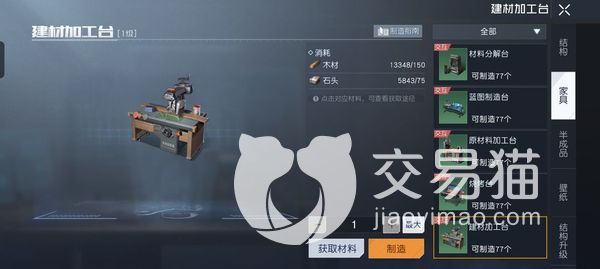 关于这个工具大家可以通过建材加工台进行制造,它需要大家先将自己等级达到33级之后才能解锁该工具,这个时候还能在建材加工台里面看到它,然后把这些材料收集到,就可以去制作一下了,制作完成之后将它放到庄园的某一处想要使用的时候,直接靠近它,就会出现使用页面了。