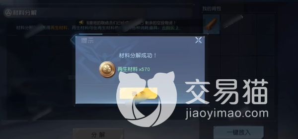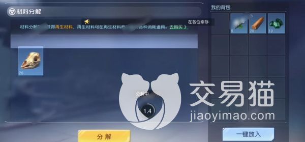 点进来之后它会出现两个区域,左边是将被分解的材料,而右边是背包中的所有物资,可以在右边点击选中需要分解的材料,将它移到左边区域,选好所有材料之后,直接点击分解按钮,就能将它们进行分解了。