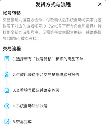 接下来说说交易猫的发货流程,一般来说都是需要我们自己在买家付款之后进行发货,如果开启了验号那么是客服来自动发货与换绑。但是有些小伙伴的账号还绑定了其他游戏,这样的话就会给我们游玩别的作品带来影响,万幸交易猫支持奇葩战斗家的转移功能,会由系统自动将其中的数据传输到买家提供的新账号中。在交易完成之后我们可以正常使用自己的账号,而其中原来的游戏数据则会被清空、转移到买家的号里,整个过程都不需要我们进行操作。