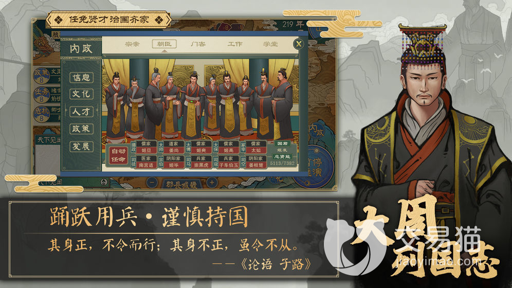 在游戏中玩家可以培养各个流派的人才,这些人才将在朝廷内担任官职,为我方的政治以及文化贡献巨大的力量,不过想要培养这些人才是需要设置学府的,学府的老师也有需要玩家自行考察的,养成方面很全能。